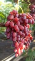 Грона дуже великі, конічної форми, частіше з відгалуженнями, середньої щільності або щільні. Середня вага грон в районі 600-1500 грам. Ягоди великі і дуже великі, вагою 8-12 грам, яйцевидної або овальної форми, рожевого кольору, а в добре освітлених місцях – яскраво-червоного. Смак простий, гармонійний. М’якоть щільна, м’ясисто-соковита. Шкірка міцна, не товста. Ягоди не розтріскуються при підвищеній вологості. Функціональність квітки – двостатева. Кущі сильнорослі.